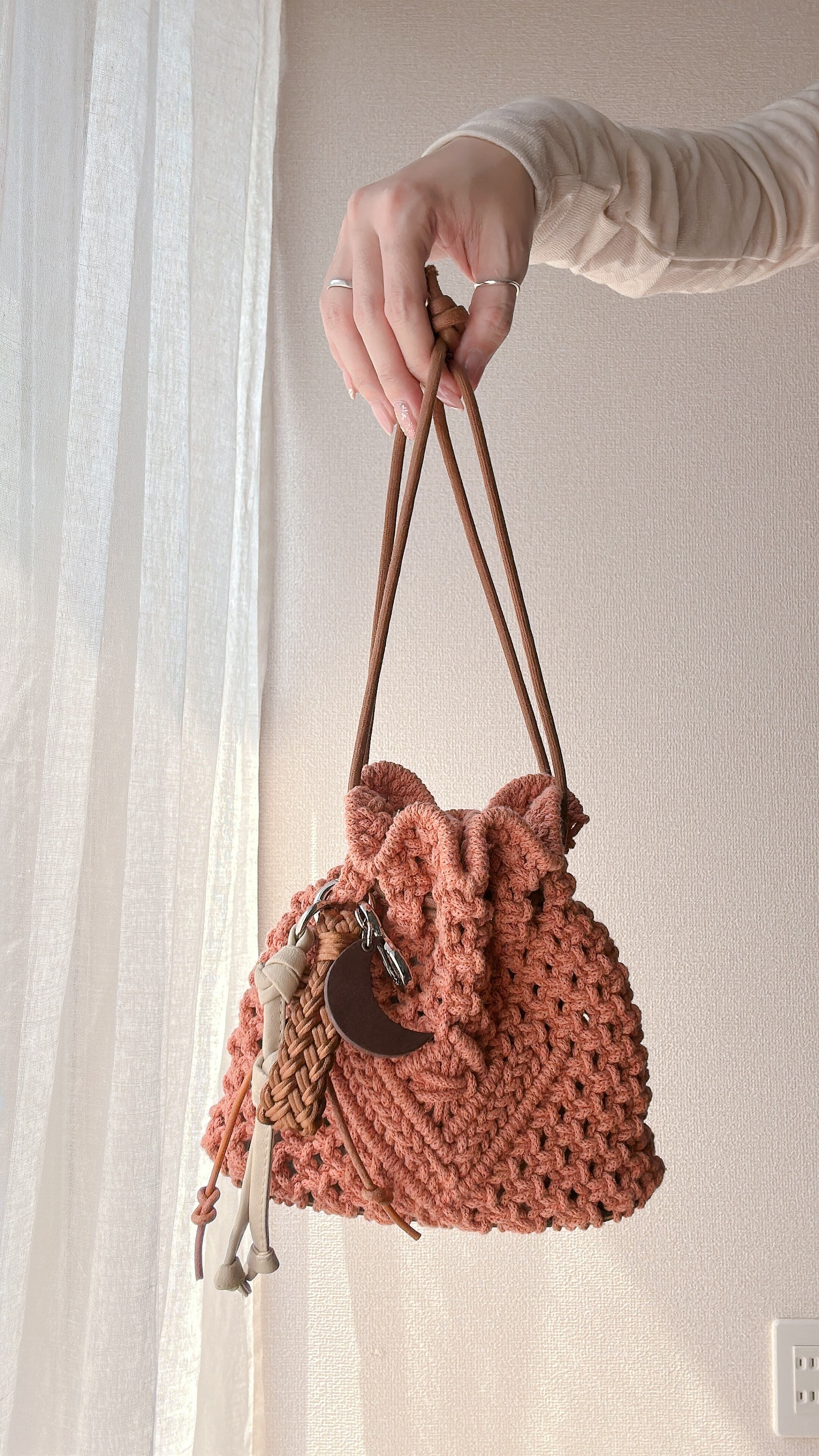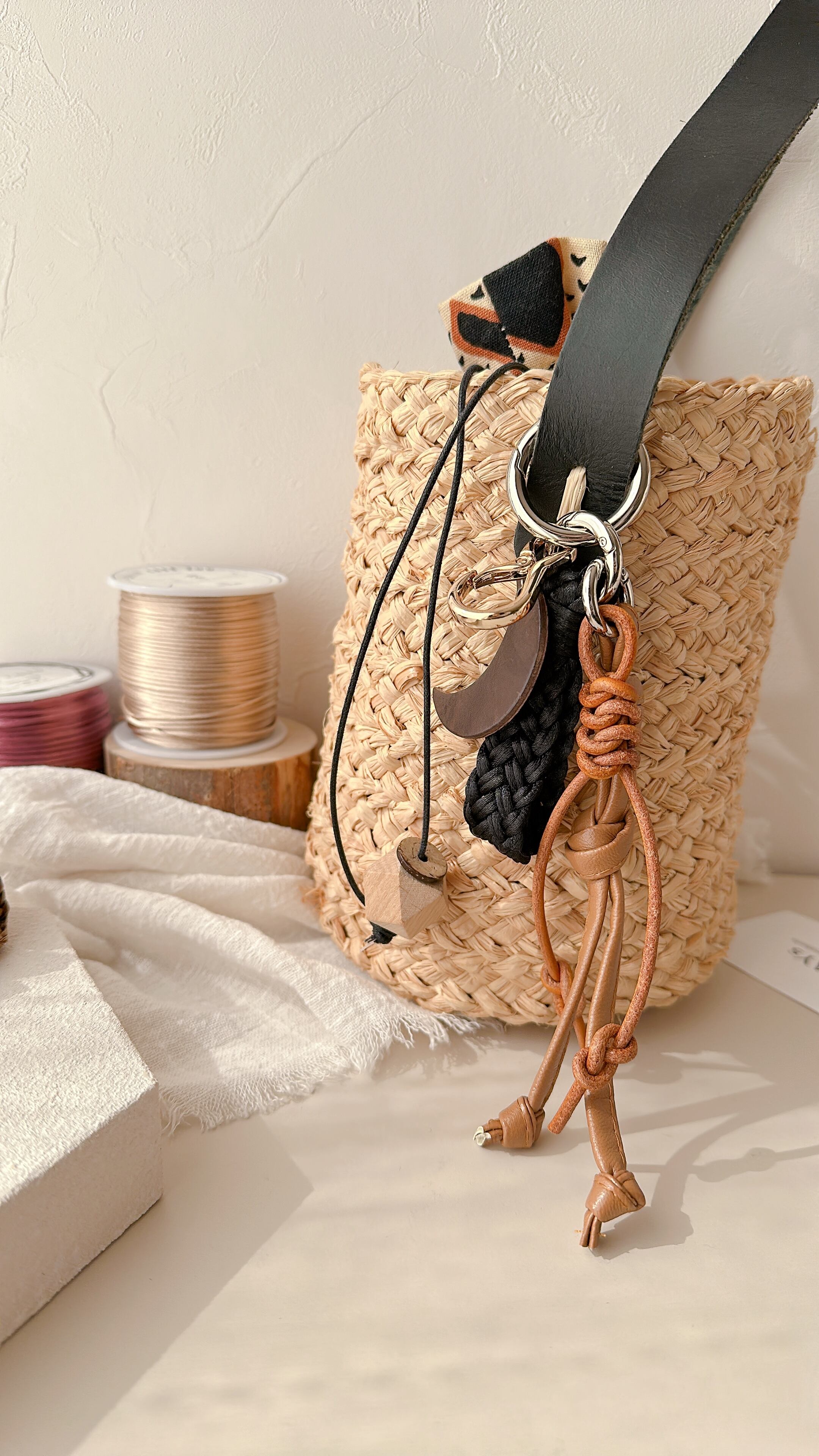 紐で作られた存在感のあるチャームが