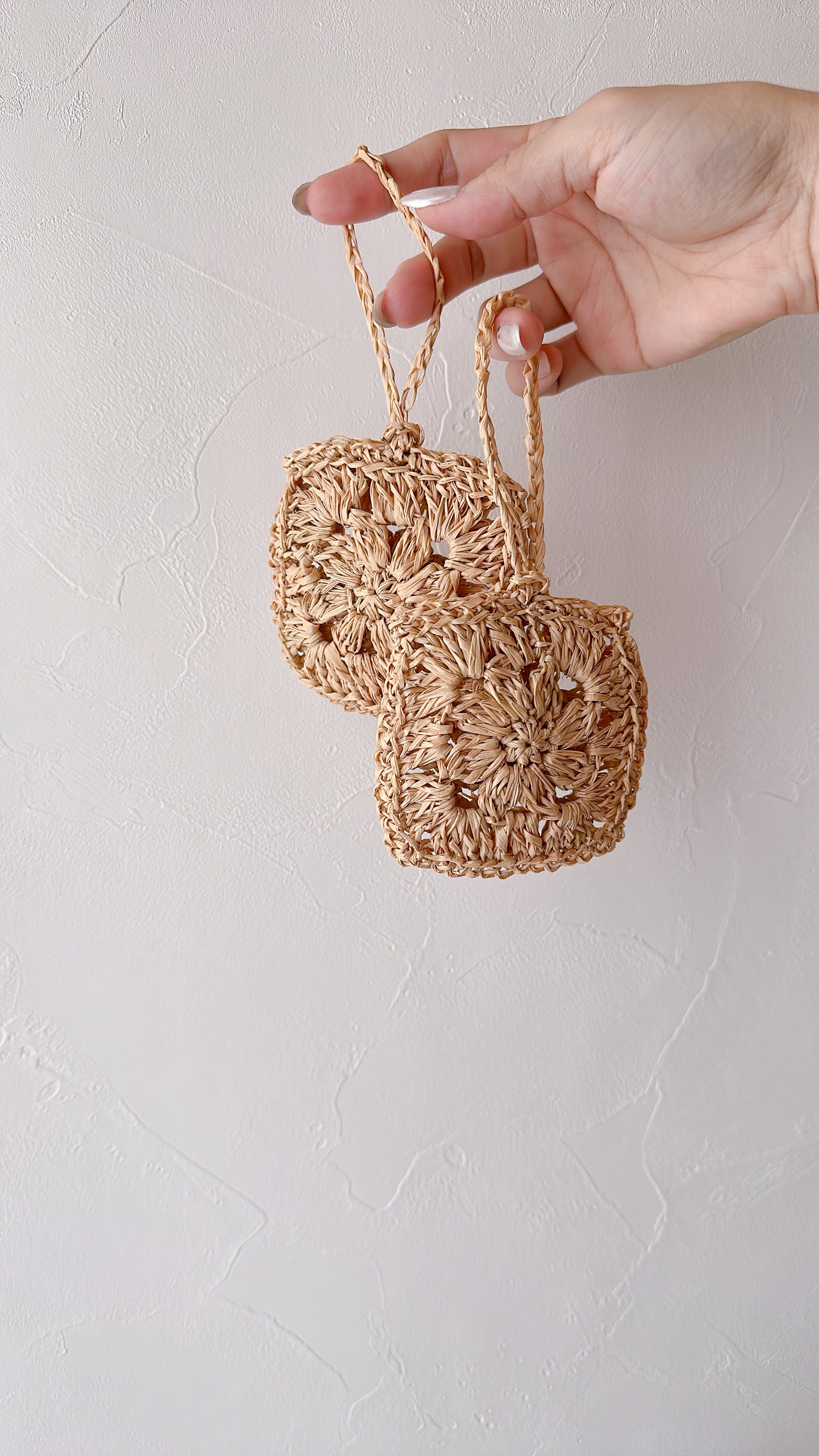 天然のラフィアを編んで作ったイヤホンケースです。
